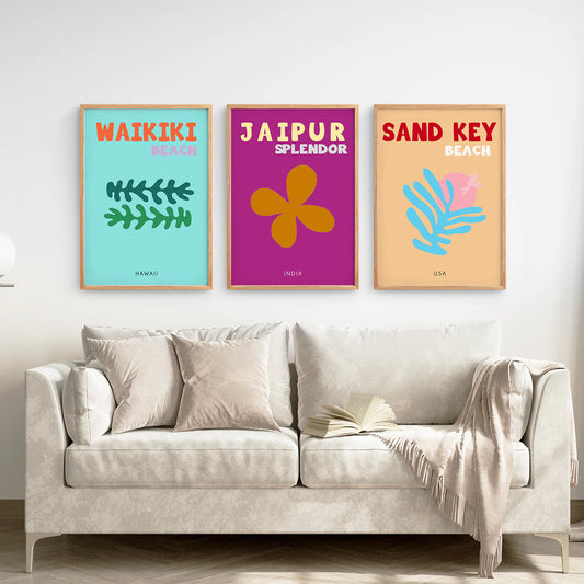 Set of 3 Trendy Y2k Style Posters. Summer Travel Theme