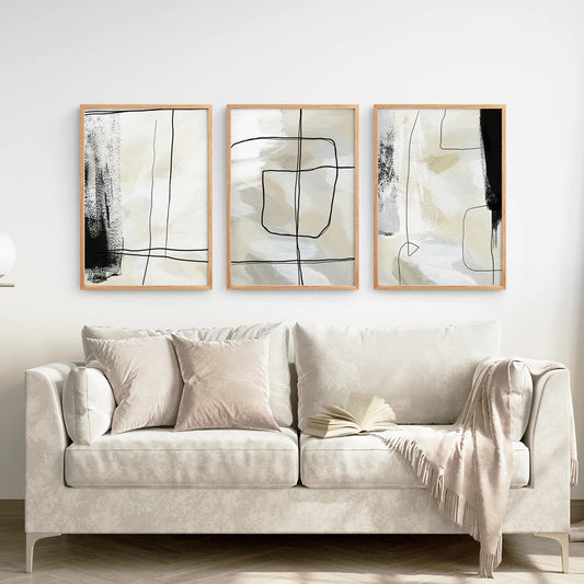 3 Piece Simple Abstract Art Set of Prints. Japandi Decor