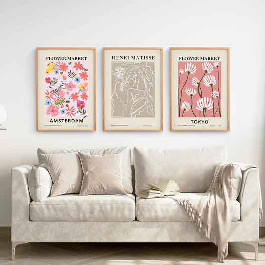 3 Piece Botanical Boho Art Set. Flower Market Theme