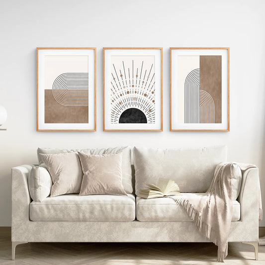 Trendy Mid Century Style Set of 3 Prints. Boho Art