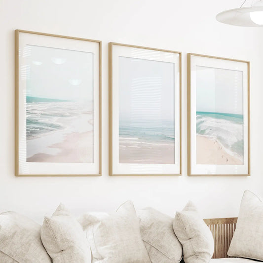 Pastel Minimalist Wave Photo. Set of 3 Beach House Wall Art