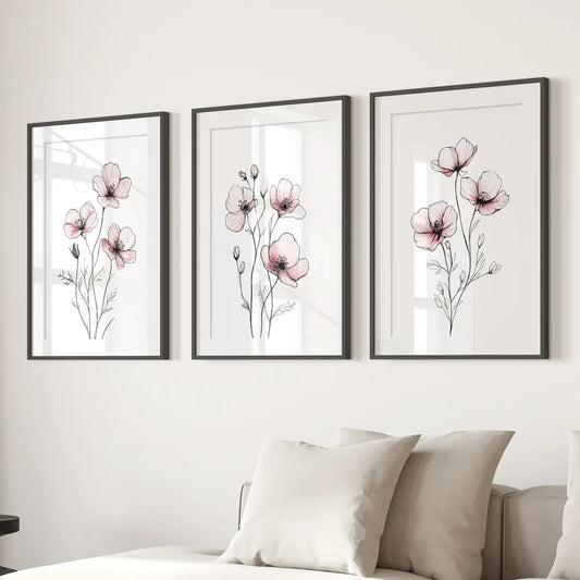 Floral Minimalist Art Posters. 3 Piece Wall Decor