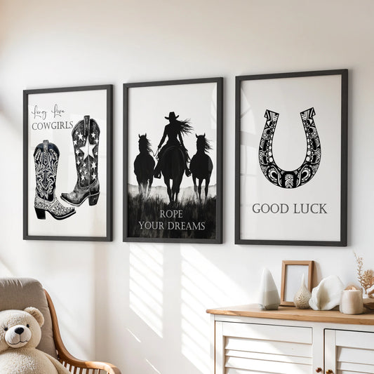 Western Cowgirl Wall Art Set of 3. Rustic Ranch Decor