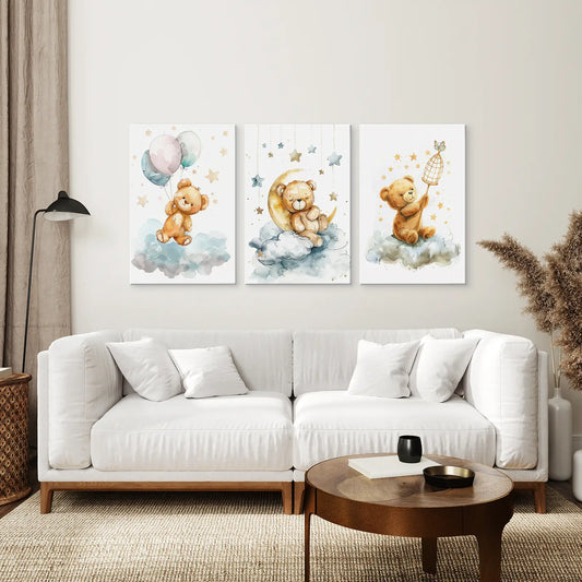Set of 3 Teddy Bear with Balloon Print Decor Set